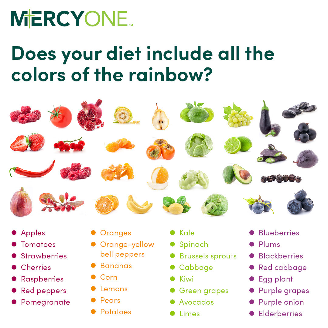Remembering to add colorful fruits and vegetables to your diet every day is a simple way to make sure you’re receiving a variety of nutrients your body needs. When you eat the rainbow, you are setting yourself up for good health.