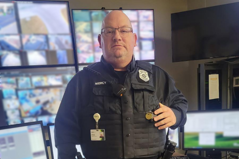 Steve Smith, a security officer at MercyOne Des Moines Medical Center, was visiting with two fellow officers at work in May 2024 when he suddenly began slurring his words and acting differently. His co-workers recognized he was having a stroke because they knew the warning signs from the BE FAST stroke education campaign: